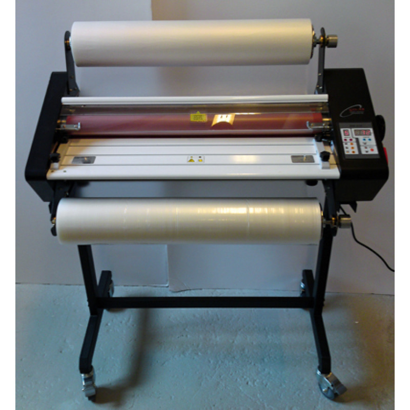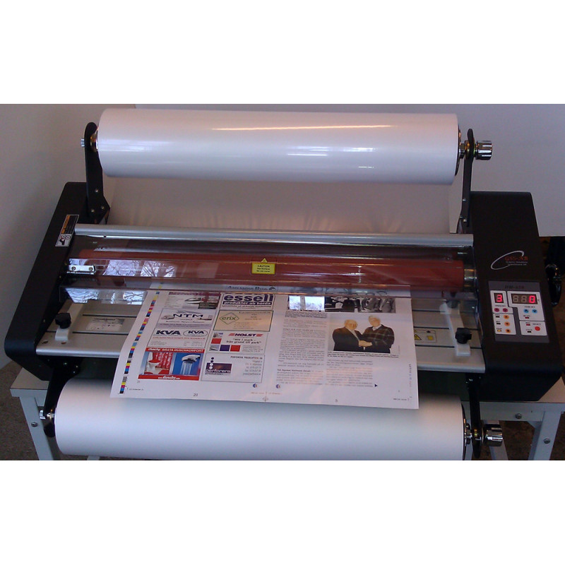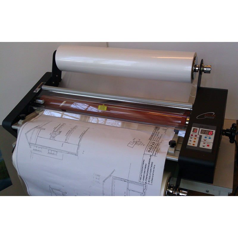 Multifunksjons lamineringsmaskin. Fungerer med både kaldlaminat, varmlaminat og laminatark. Både enkelt- og dobbeltsidig. Egen kontroll for hastighet og temperatur.